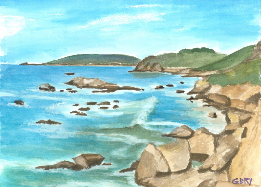 San Luis Bay (9 x 12)Pebble Beach Cresecent City (11 x 15)Shell Beach Shore (9 x 12)Pebble Beach Butterfly House (11 x 15) Waves (11 x 15)Montana De Oro Tower Cave (11 x 15)Pismo Sunset (9 x12) Coastal Sunset (9 x 12)The Lone Cypress (15 x 22)Highway One (15 x 22)Living at the Top (11 x 15)Reflections of Nepenthe (11 x 15)Dock of the Bay (9 x 12)Lookout (11 x 15)