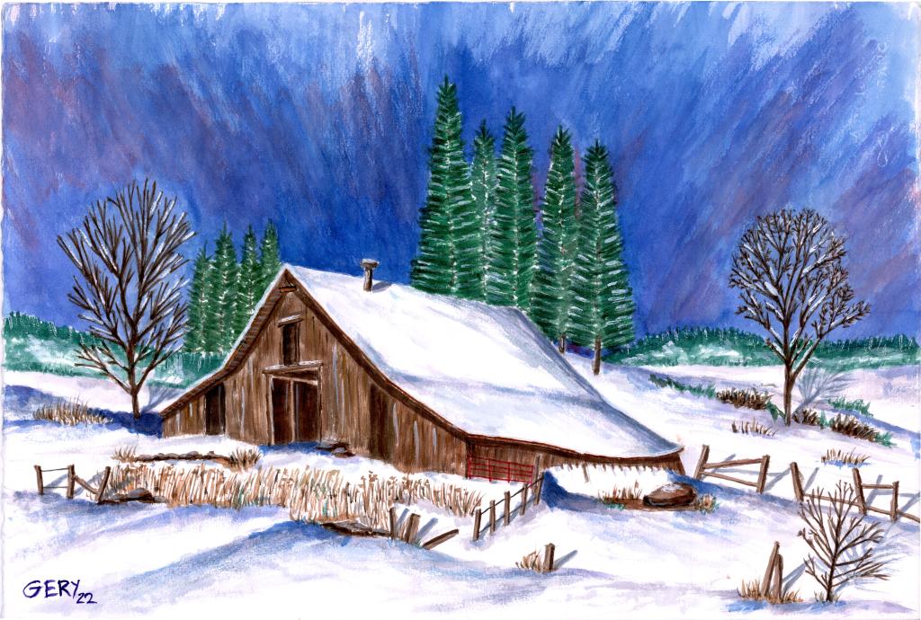 Winter Barn (15 x 22)Sand Harbor Tahoe (15 x 22)Autumn Cottage (9 x 12)Trees of Autumn (9 x 12)