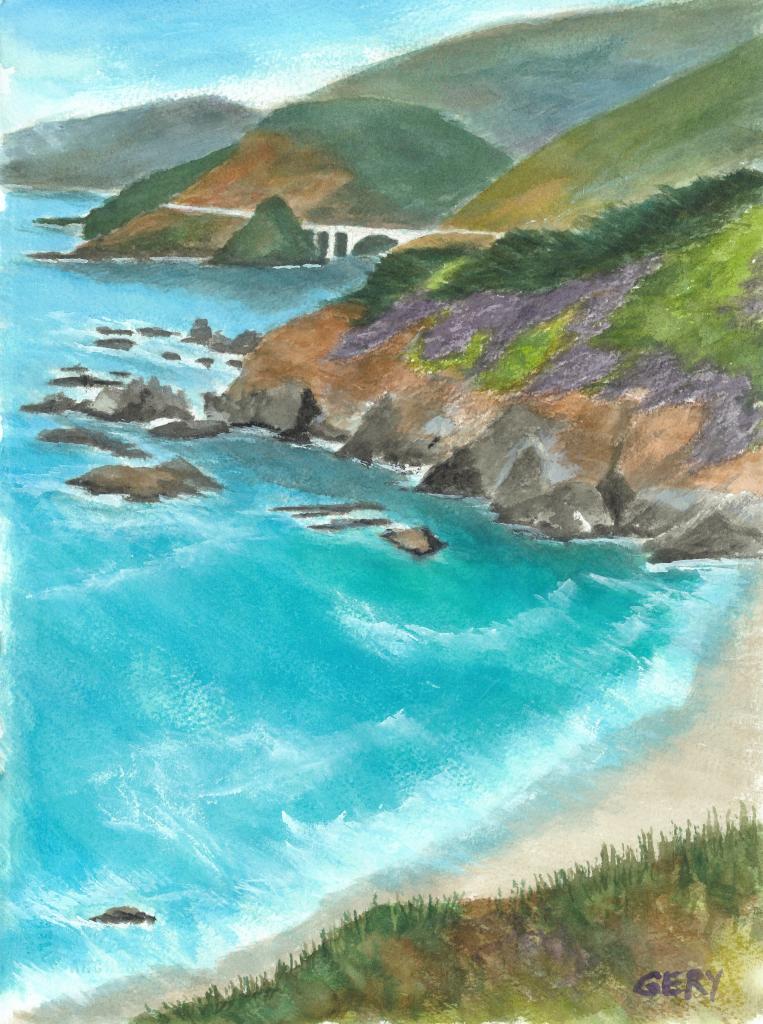 Cave Rock Contemplation (9 x12)Rocky Shores (11 x 15)Avila Sailing (9 x 12)Avila Pier (11 x 15) Humboldt Coast (11 x 15)Big Sur Coast (11 x 15)San Luis Bay Sunet Sailing (9 x 12)Sunset Sail (9 x 12)Crescent City Breaker (11 x 15)Moonstone Beach Walkway (15 x 22)Mendocino Bluffs (15 x 22)Morro Bay Estuary (15 x 22)Bridge on the Path (11 x 15)Poppies in Spring (9 x 12)Shell Beach Afternoon (11 x 15)